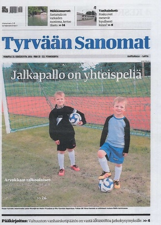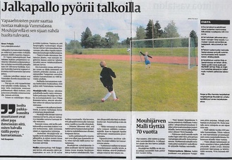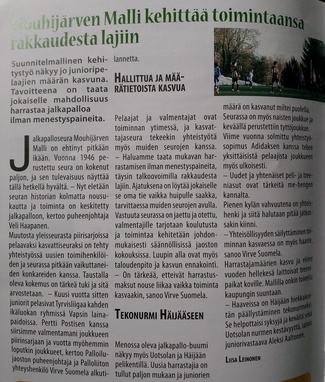 ![]() Kanniston pojat Riku ja Roope lehden etusivulla. | ![]() "Mouhijärvellä ihmiset tuntevat toisensa tosi hyvin, joka on varmasti jo itsessään auttanut luomaan tiiviin verkoston. Mielestäni Mouhijärvellä on varsin hyvät edellytykset harrastaa jalkapalloa, ja onhan monen muun lajin hinnat vieläkin korkeammat, Kannisto selvittää." |